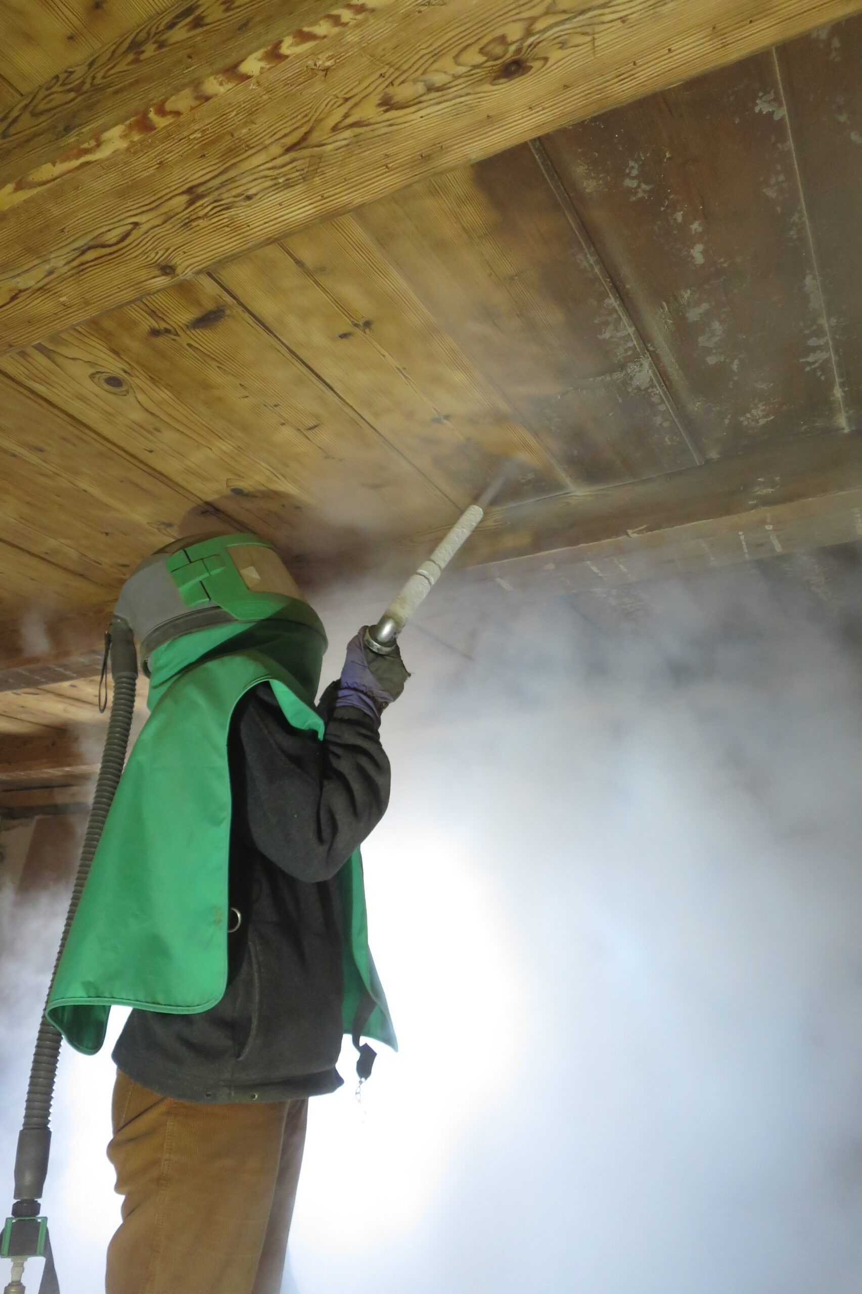- Bauobjektsanierung: Trockeneisstrahlen eignet sich zur Reinigung empfindlicher Oberflächen wie Sandstein, Fassaden, Dachstühle und Fachwerke.